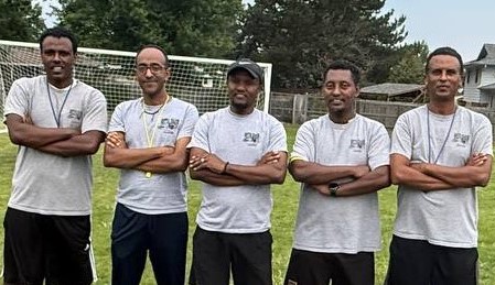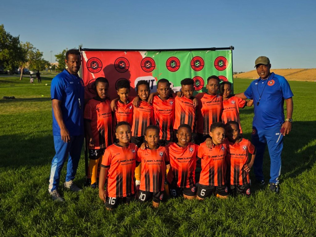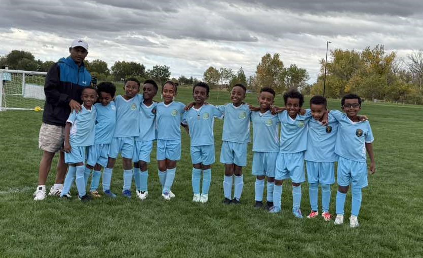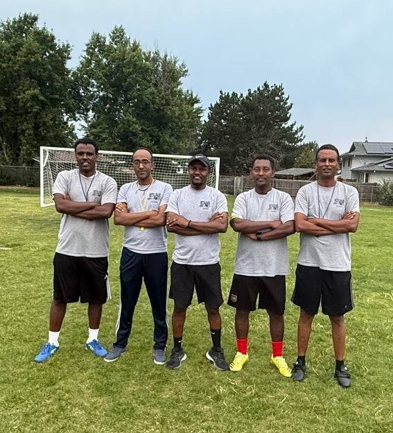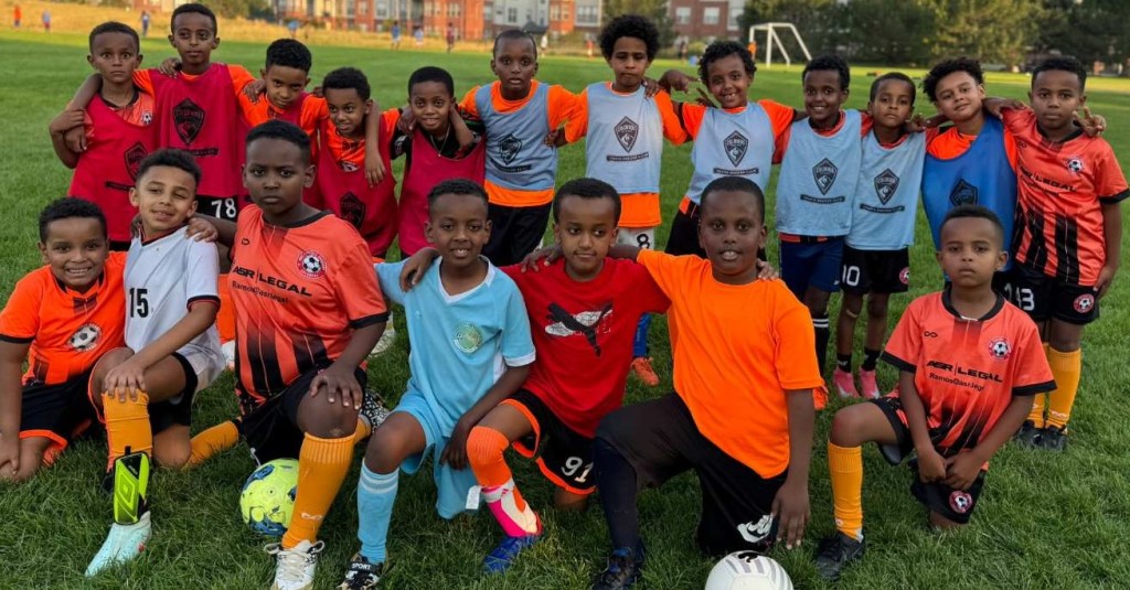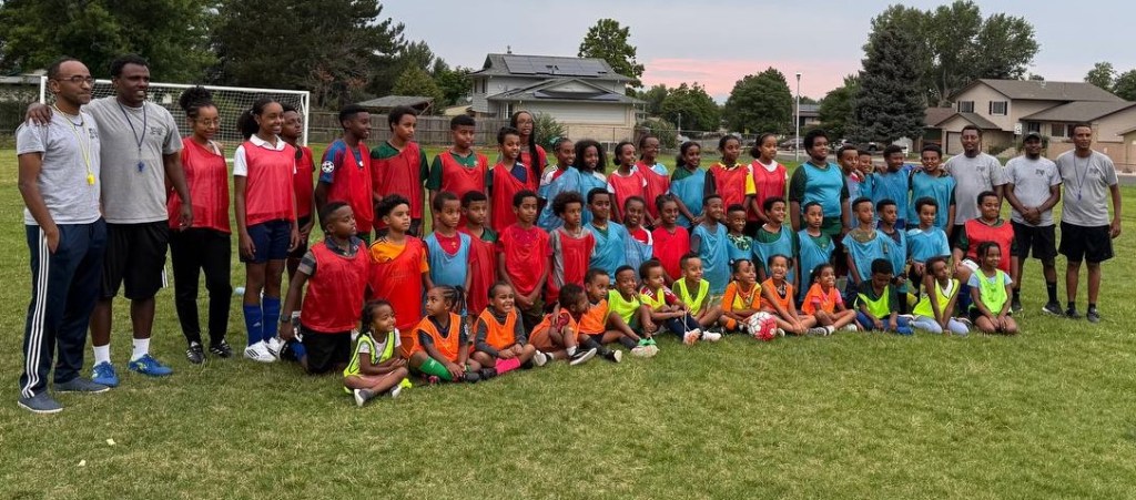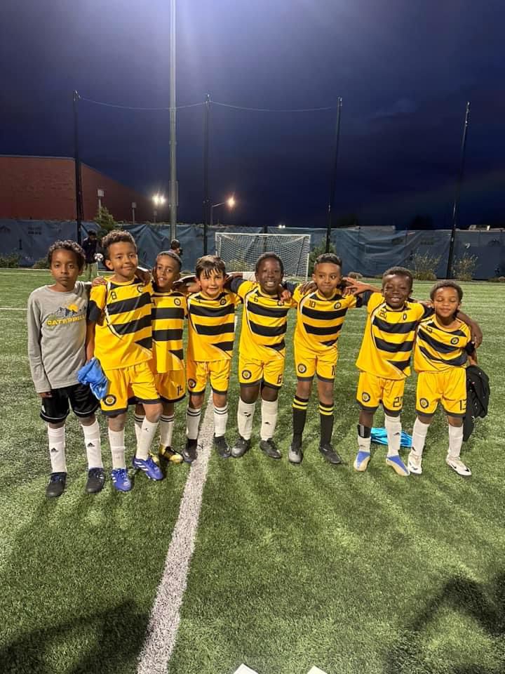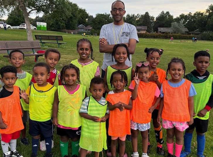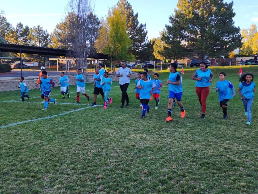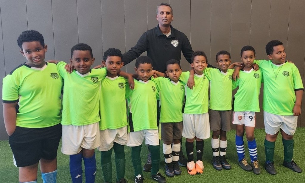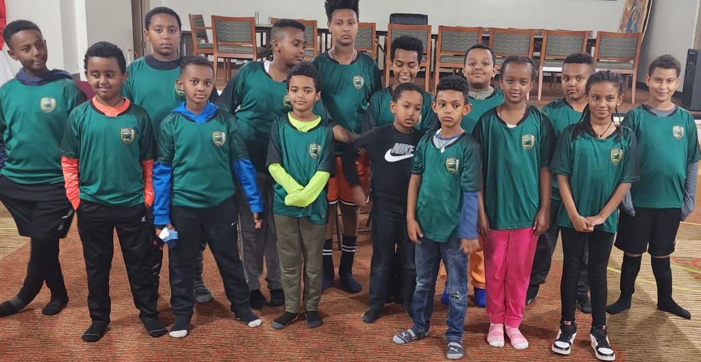Some of our kids and their coaches in the soccer field